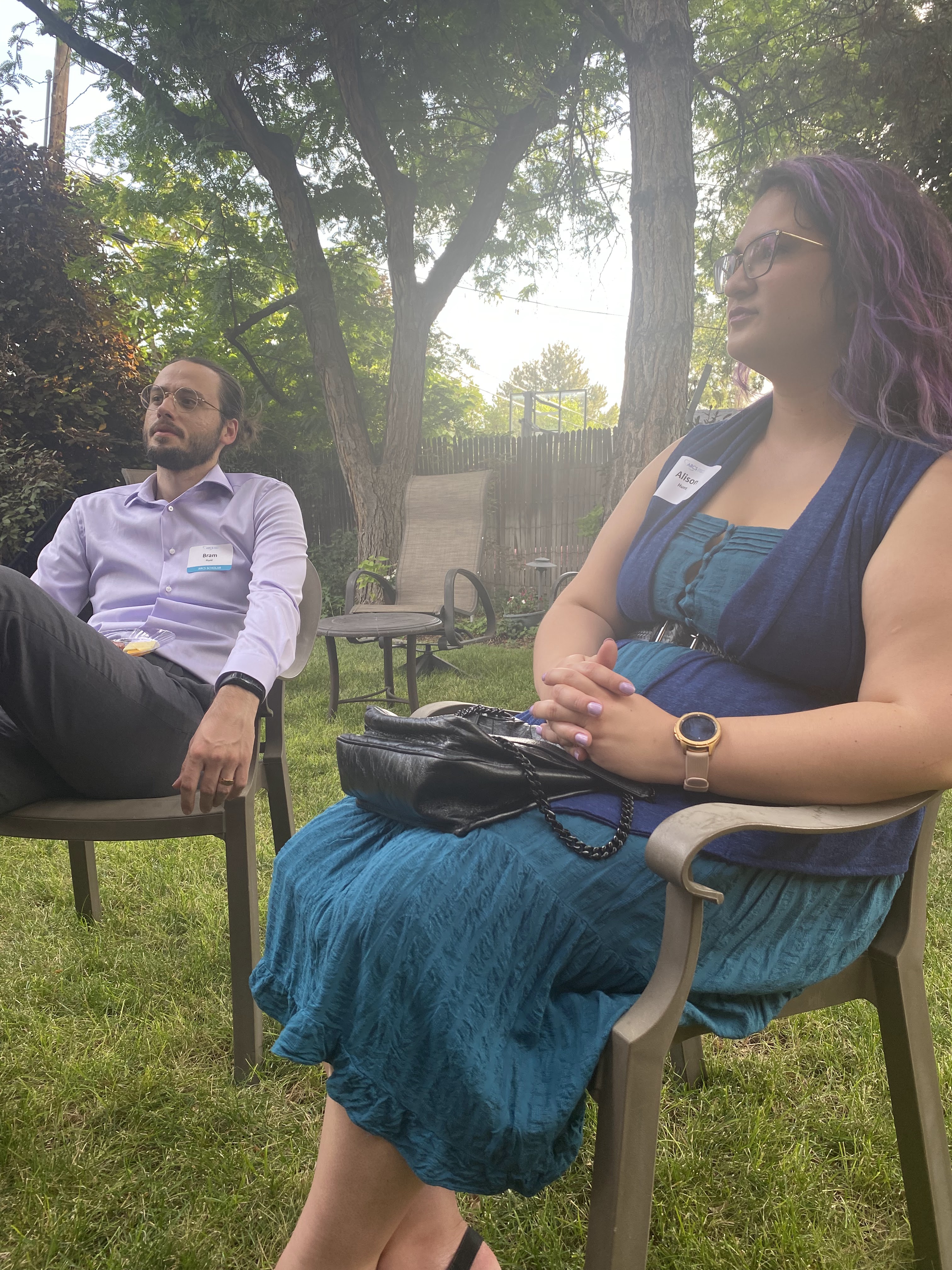 ARCS Members, Scholars and guests gathered outside (thankfully the storm passed) for a pleasant evening of conversation. It was a great opportunity to find out more about our scholars. We were able to congratulate Noelle Brown and her fiance, Mark Matak, who were leaving the next day to get married. And we congratulated Anna Deleray who has completed her PhD and will be moving on to the next phase of her career. In addition to our Utah members, Patty Lee from the Honolulu chapter and Nancy Spetzler from the Phoenix Chapter were able to attend.